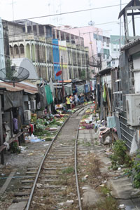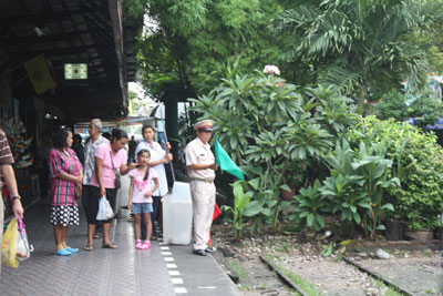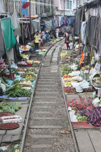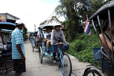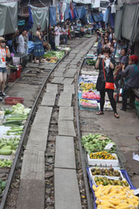 | シャム湾沿いに西へ走る短い鉄道2本に乗って 観ましょう。 まずはバンコク対岸のトンブリーから アユタヤー時代の港マハーチャイへ行きます。大勝利という意味の名に歴史を刻んだ港街の市場で珍しい大魚や大海老を観て 新鮮な野菜 乾物 海老みそなどの買い物を楽しみ 海辺の砲台に並んだ大砲と記念撮影。かつての海戦の様子をレヌカーから 聴きましょうフェリーでタ―チーン川を渡った向こう岸の町は、19世紀ラーマ5世が行幸され テサバーン(都市衛生局)制度を始めた地です。ナムプラー造りの小屋が並ぶ中を人力車で走り ラーマ5世の銅像にご挨拶して メクロン線に飛び乗ります。マングローブと塩田が続き 水鳥が飛ぶ中をえんこら えんこら やっと到着したメクロン駅は 折り畳み傘で名高い市場! 傘張った屋台がひしめくをチンチン電車が走る様子を車上から 悠々とカメラに収めてください。 駅について 電車から 降りたら メクロン川の岸辺の古い街並みを歩いて 専門車とランデヴー。美味しい昼食のアムパワーの町へ急ぎます。 昼食後に市場見学。尾長船に乗って メクロン川に乗り出で ダムナンサドワクへ。小さなパナマ運河と呼ばれる水門を通って 水路を走ります。 専用車とのランデヴー後は、涼しい車内で「午後のお茶」です。忙しいけれど、楽しく、驚きのつまった旅にご参加ください。40年の歴史ある手作りの旅です。 |